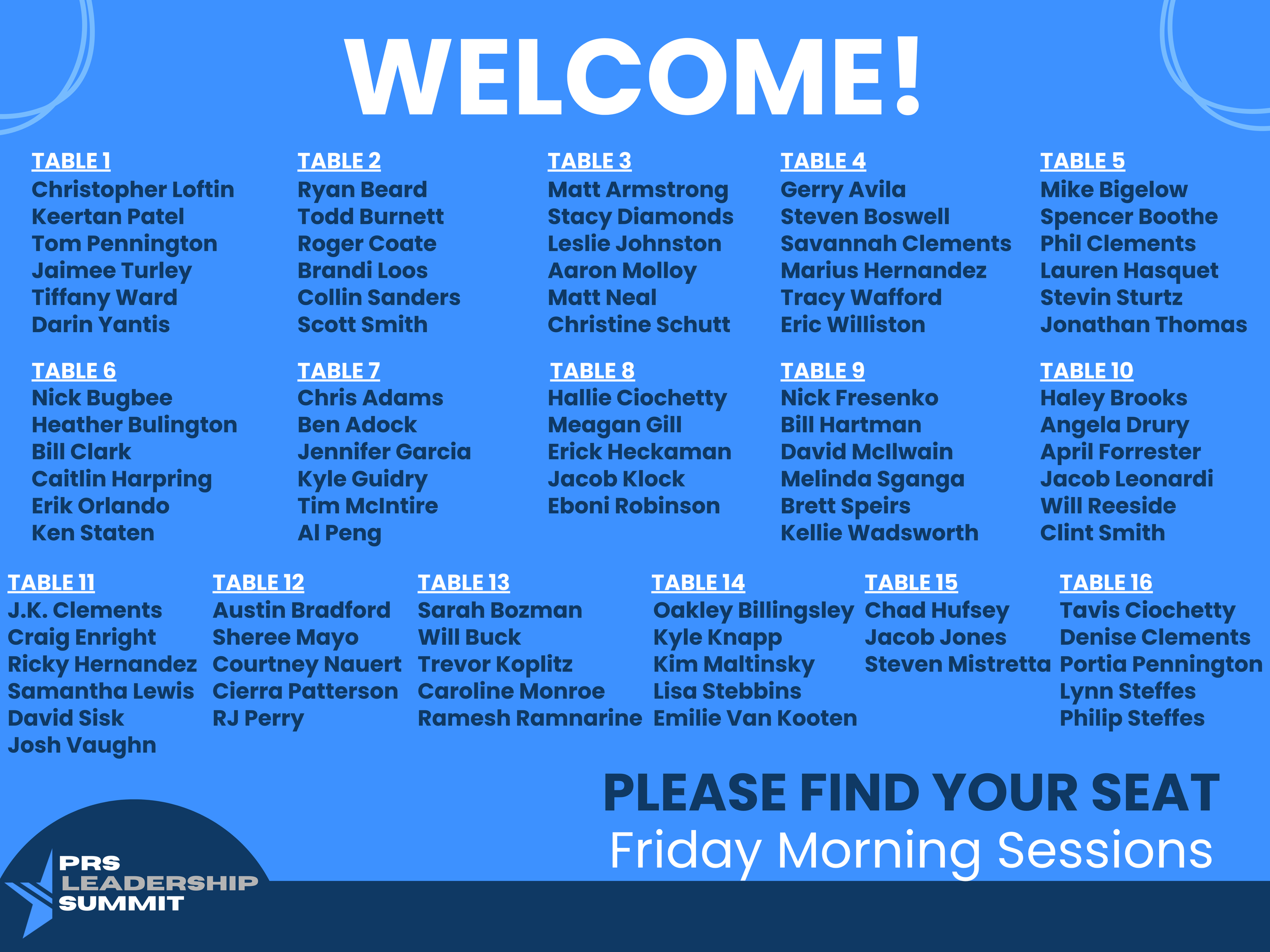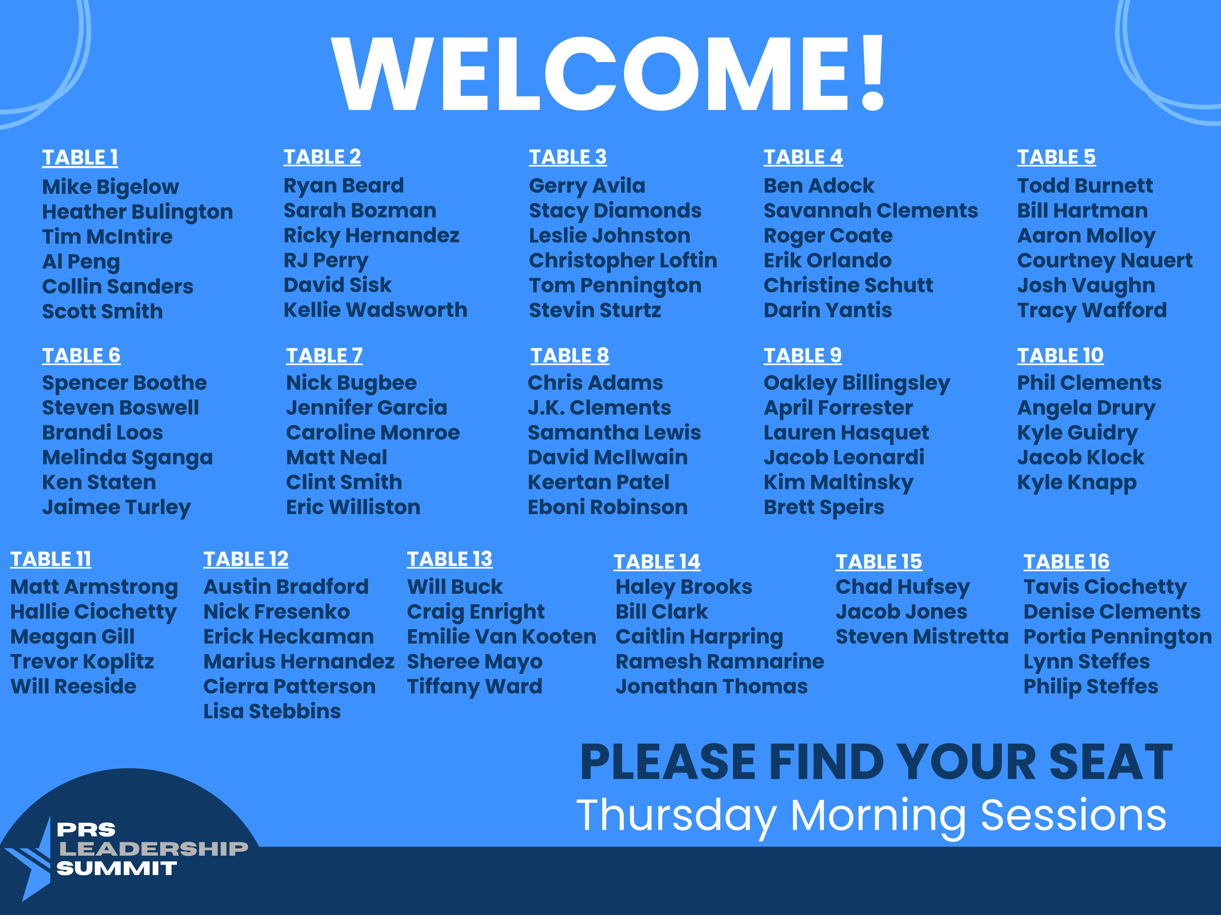 Thursday Morning SessionsTable Assignments Thursday Awards DinnerTable Assignments Friday Morning SessionsTable Assignments